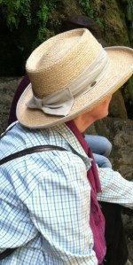 The air conditioner was running full tilt despite the cool weather, pouring cold air down onto the top of my head and my neck. I can’t abide that. I reached over, picked up my hither-to-unnecessary straw hat and put it on my head. It had barely settled my hair when the waiter appeared at my elbow and whispered something unintelligible. I needed translation. She was telling me to remove my hat.