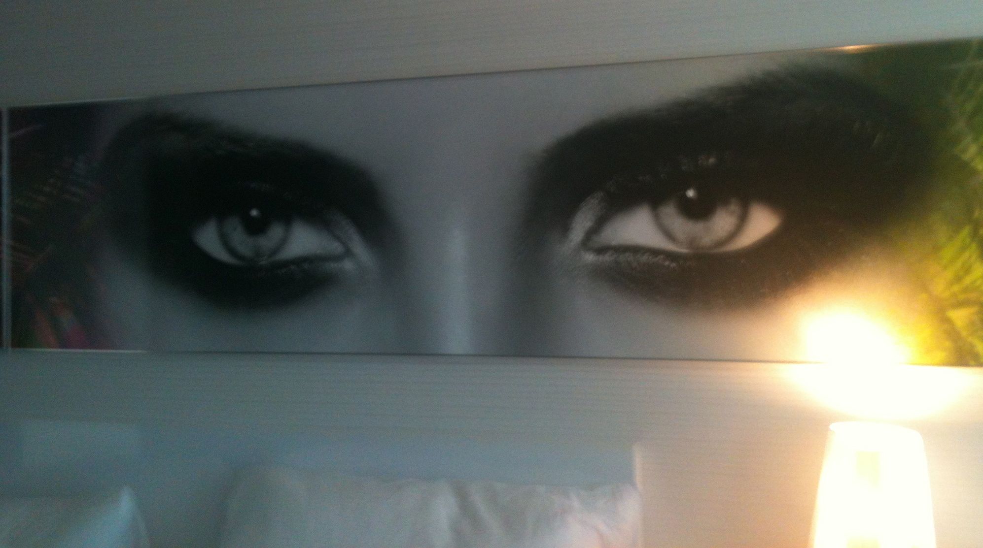 And yet I find myself in Las Vegas from time to time, staying in a hotel. On Christmas Eve it was the Palms. We had chosen the Palms because one of us had stayed there last Christmas and reported that with wood panelled rooms it had a warm vibe . Besides the rooms were going cheap. How surprised we were to find there had been a total renovation. Now the tigerlike eyes of a woman, framed by palm fronds gazed down over every bed. The bathtubs had been removed and replaced by showers big enough to accommodate a small crowd behind transparent plexiglass. The coffee makers had gone the way of the bathtubs. This meant that whenever I wanted tea, I had to travel down to the cafe to get hot water. On Christmas morning at 5 a.m., I made my way there to discover that the usually crowded casino had only three diehards, eyes glued to their slot machines.